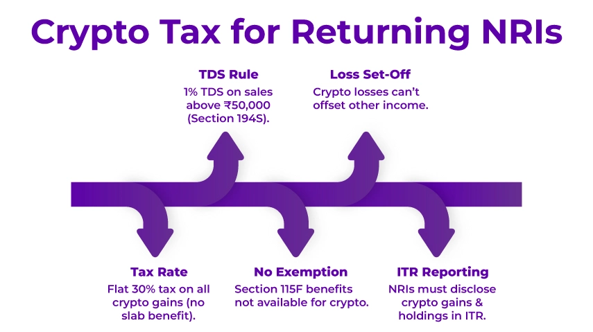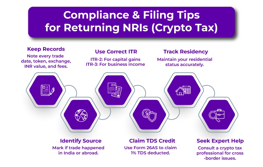 Here are the compliance requirements and filing tips for crypto taxation for returning NRIs in India: