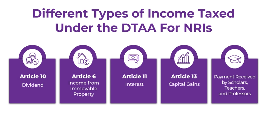These are the taxes covered in the DTAA between India and the USA. Also, default taxes and penalties are not covered under the DTAA agreement. Moving ahead, now let's know the different types of income taxed in this agreement between India and the USA.