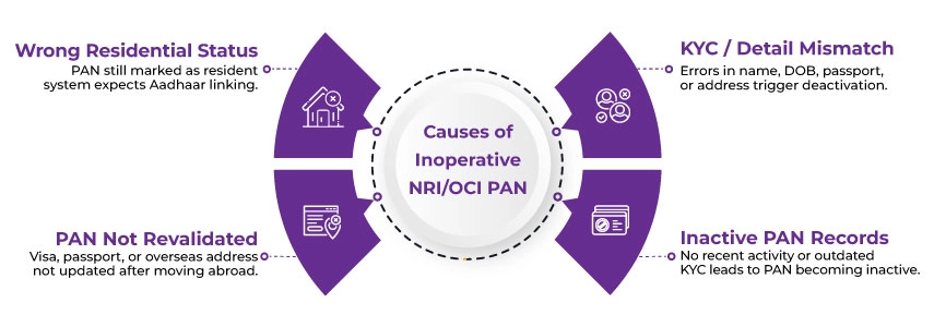 - In most cases, NRI PAN cards are flagged as inoperative because your NRI residential status is not updated with the Income Tax Department.