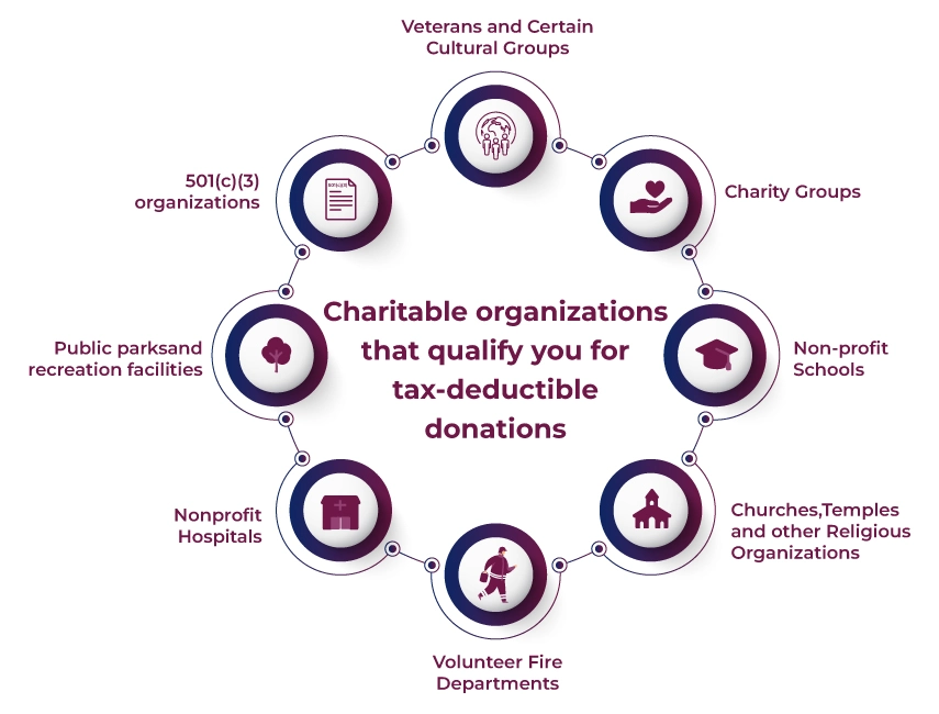 To provide you with an idea, here is the list of charitable organizations that qualify you for tax-deductible donations: