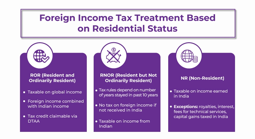 Here is how India imposed tax on foreign income based on the residential status of the taxpayer: