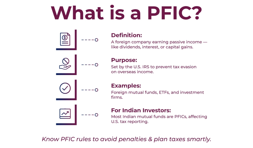 A Passive Foreign Investment Company, or PFIC, is a foreign corporation in the US that generates passive income. It includes capital gains, interest, or dividends. Additionally, it also includes certain types of foreign mutual funds, making it vital for Indian investors living in the US to know their tax implications. The US Internal Revenue Service (IRS) implements the PFIC rules. It prevents the US taxpayers from tax evasion on the passive income they earn through investments.