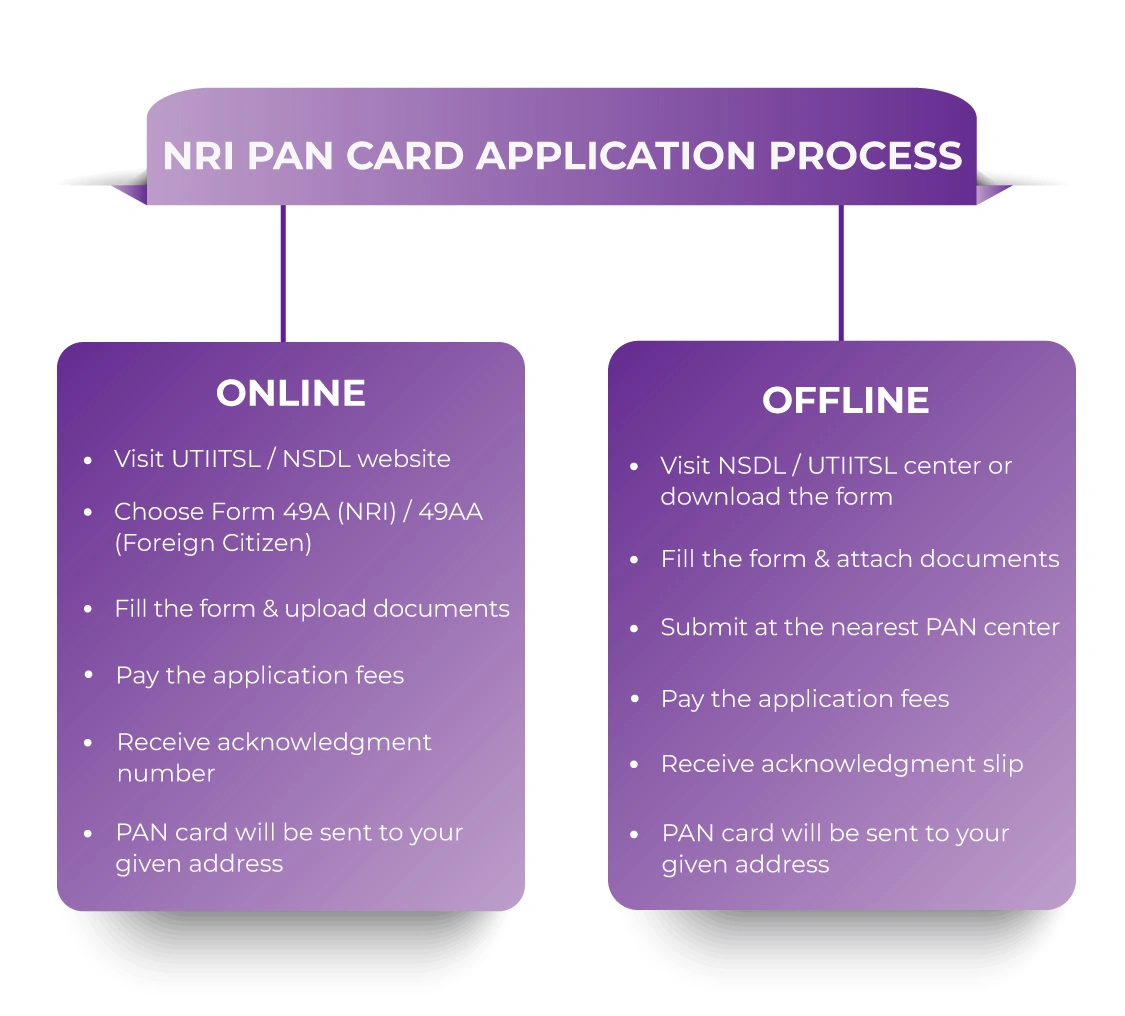 - An NRI is required to complete Form 49A to obtain a PAN card.
